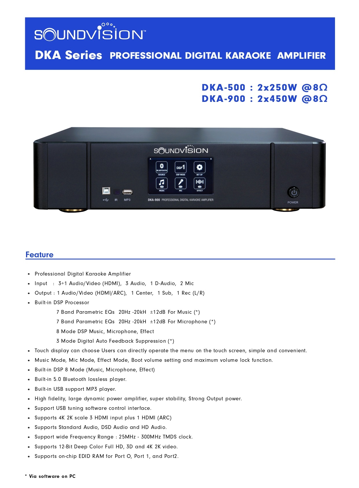 แอมป์คาราโอเกะดิจิตอล SOUNDVISION DKA-900 2×450 วัตต์ Built-in DSP รองรับ 4K HDMI ARC และ บลูทูธ